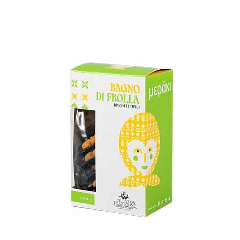 I biscotti "Bagno di Frolla" sono dei frollini golosi bagnati per metà con glassa al cioccolato fondente buoni e gustosi con latte di bufala intero, il meglio della produzione dolciaria nostrana realizzati nel Parco Nazionale del Cilento, Vallo di Diano e Alburni.