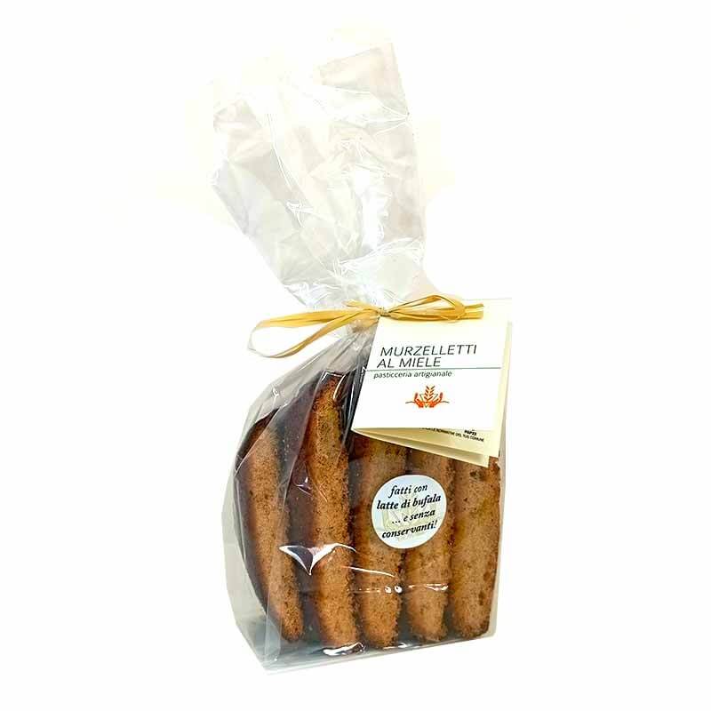 I nostri Murzelletti semplici ovvero morselletti o cantucci sono dei gustosi biscotti interamente fatti a mano rispettando le tecniche della tradizione italiana con ingrediente principale il latte di bufala cilentana e il miele millefiori.
