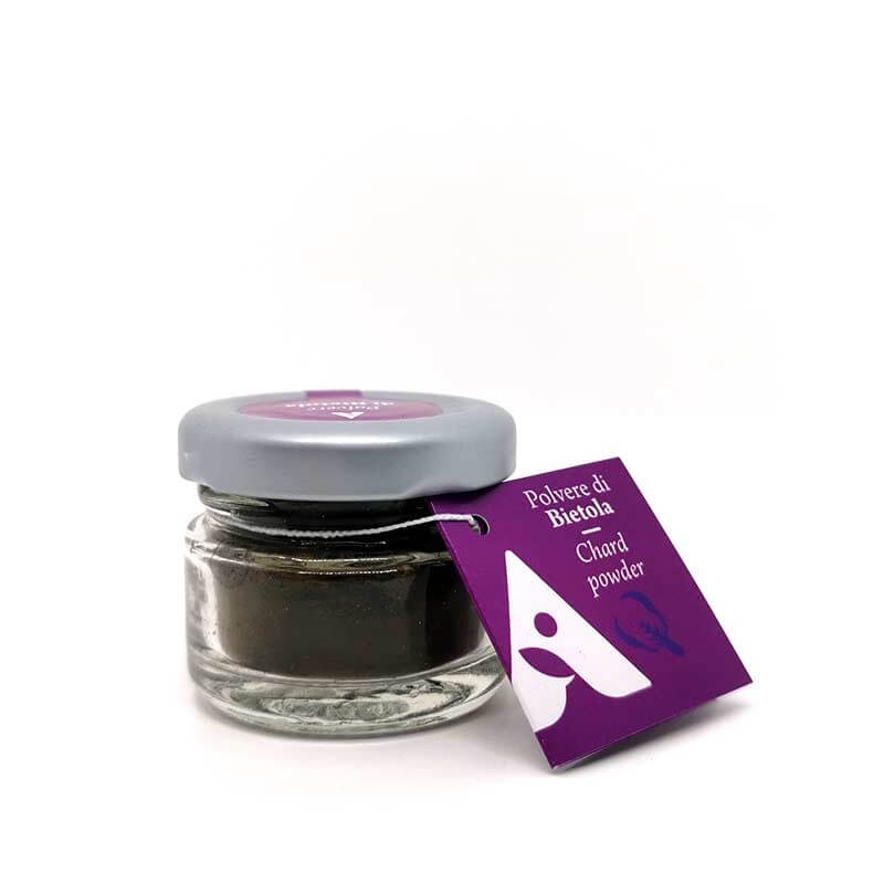 Bietola in polvere da agricoltura certificata, ricavata dalla disidratazione del prodotto fresco, un processo che permette la conservazione di tutte le sue proprietà benefiche.